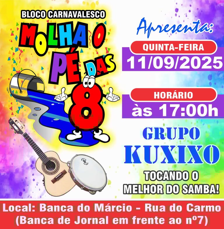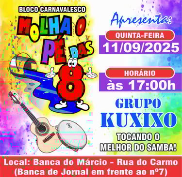 Convide seus amigos, inimigos, parentes, pessoas do trabalho, vamos ajudar o Bloco Molha o Pé das 8.